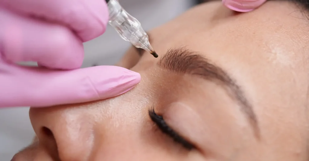 To make the brows look fuller, microblading involves tattooing small “dots” that resemble natural “hair,” while micro shading involves tattooing small “lines” that look like natural “hairs” that cover the brow area with a full shade of color.